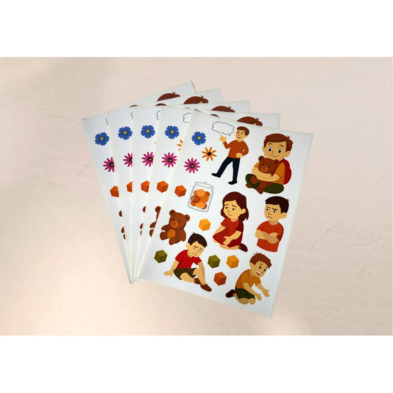 Naklejki z bohaterami z Komiksu ,,Co o tym Myślisz? Porozmawiajmy o emocjach.’’